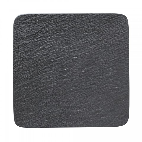 Plate, 12-7/8", square, flat, dishwasher and microwave safe, porcelain, The Rock, black shale