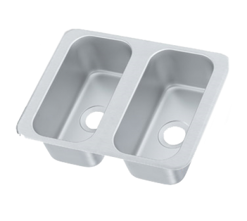 Vending Cart Drop-In Sink, two compartment, 6-1/8"W x 12-1/8" front-to-back x 5" deep compartments, self-rimming, sound deadened, 2" drains, (4) stud mounts with mounting brackets included, 22/304 stainless steel construction, 17"W x 13"D (overall), NSF, Made in USA (Refer to vollrathfoodservice.com for full warranty policy)