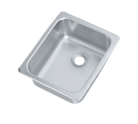 Drop-In Sink, (1) compartment, 11"W x 13-1/4" front-to-back x 6" deep compartment, self-rimming, 2" drain, (4) stud mounts with mounting brackets included, 22/304 stainless steel one-piece drawn construction, 13"W x 15-3/4"D (overall), Made in USA (Refer to vollrathfoodservice.com for full warranty policy)