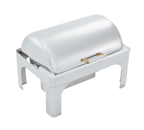 New York, New York® Chafer, 9 quart, rectangular, 18/8 stainless steel, mirror finish with brass accent, incl rack, dome channeled removable cover, dripless waterpan, SPV food pan & (2) fuel holders, 3-position dome cover, 25" x 17-1/2" x 18-1/2", imported (Refer to vollrathfoodservice.com for full warranty policy)