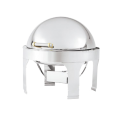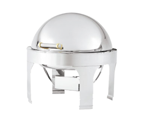 New York, New York® Chafer, 6 quart, round, 18/8 stainless steel, mirror finish with brass accent, incl rack, dome channeled removable cover, dripless waterpan, SPV food pan & fuel holder, 3-position dome cover, 19" x 19" x 18-1/2", imported (Refer to vollrathfoodservice.com for full warranty policy)