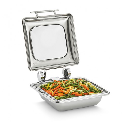 Mirage® Induction Chafer, 5.6 quart (5.3L) capacity, accepts 2/3 size steam table & fractional pans, (1) food pan & glass cover included, designed to work with Vollrath induction buffet warmers & other Vollrath induction products, imported (Refer to vollrathfoodservice.com for full warranty policy)