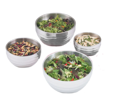 Angled Beehive Insulated Double-Wall Bowl, 3.7 quart (3.5L), 18/8 stainless steel with mirror exterior finish & satin interior finish, requires no preheating or chilling to maintain proper food temperature, 11-13/16" top diameter, 8-1/4"H, dishwasher safe, NSF, imported (Refer to vollrathfoodservice.com for full warranty policy)