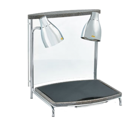 Carving Station, contoured, 24-1/2"W x 21-5/8"D x 26-11/16"H, tempered glass breath guard, NSF certified cutting board, (2) 250W shatter proof clear heat lamp bulbs, chrome finished steel frame, 120v/60/1-ph, UL, NSF, Made in USA (Refer to vollrathfoodservice.com for full warranty policy)