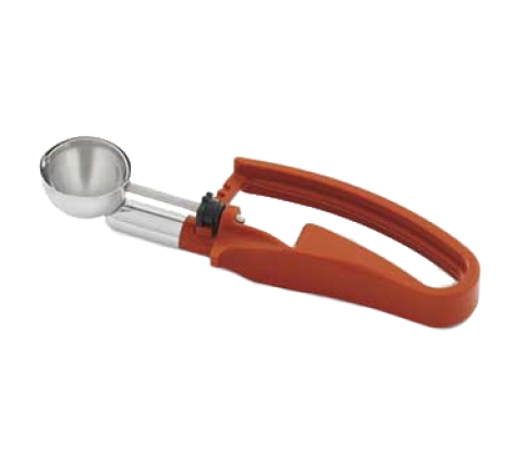 Disher, standard length, .65 oz., size 50, 1-1/2" dia., one-piece, two-part construction, stainless steel scoop & shaft, terracotta color-coded 6-3/8" long ergonomic plastic handle, designed for left or right-handed users, not recommended for use with ice cream or hard products, NSF (Refer to vollrathfoodservice.com for full warranty policy)