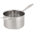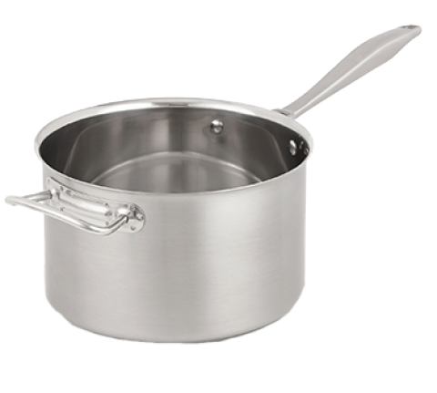 Intrigue® Stainless Steel Sauce Pan, 7 quart (6.6L), inside diameter 9-3/8", inside depth 5-3/4", 18-8 stainless steel body, with 1/4" thick aluminum & stainless steel clad bottom, ergonomic hollow handle, includes helper handle, combination satin/mirror finish, induction ready, NSF, Jacob's Pride® Collection, Limited Lifetime Warranty (Refer to vollrathfoodservice.com for full warranty policy)
