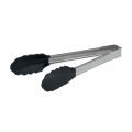 Utility Tongs, one-piece, 9-1/2" long, heavy gauge stainless, high temperature black nylon ends (heat resistant up to 450°F (232°C)), plain handle, dishwasher safe, Made in USA, Made in USA, Jacob's Pride® Collection, Limited Lifetime Warranty (Refer to vollrathfoodservice.com for full warranty policy)