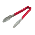 Utility Tongs, one-piece, 9-1/2" (24.1 cm), scalloped teeth, springless design, red ergonomic antimicrobial Kool-Touch® handle (heat resistant to 225°F (107.2°C), fully functional to 350° F (176.6 C), dishwasher safe, stainless steel, NSF, Made in USA, Jacob's Pride® Collection, Limited Lifetime Warranty (Refer to vollrathfoodservice.com for full warranty policy)