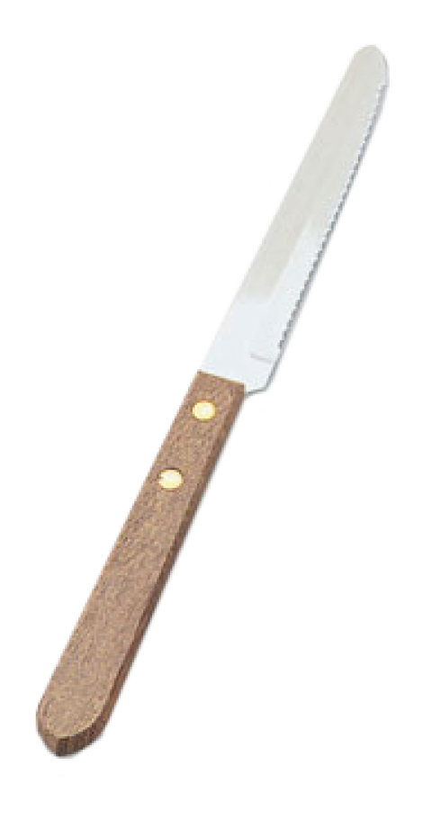 Steak knife, round tip, wood handle, hollow ground, 8-1/4" overall length, imported (Refer to vollrathfoodservice.com for full warranty policy)