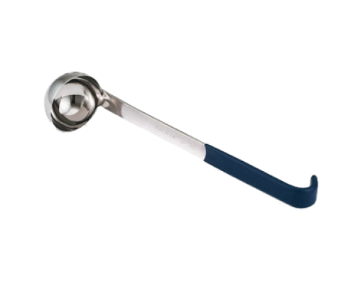 Ladle, equipped with all-natural antimicrobial, one-piece, heavy duty, 2 oz. (59.1 ml), 18/8 stainless steel, 14 ga 9-7/8" grooved hooked blue Kool-Touch™ handle with satin finish, 18 ga 2-3/8" bowl dia with mirror finish, stamped capacity in oz., & ml on front side of handle, NSF, imported, Jacob's Pride® Collection, Limited Lifetime Warranty (Refer to vollrathfoodservice.com for full warranty policy)