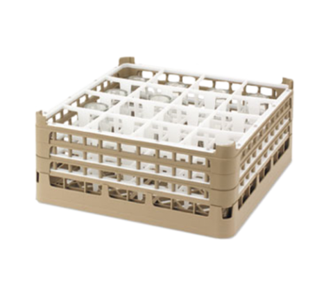 Signature Compartment Rack, full size, (16) compartments, XXX-Tall, 19-3/4"W x 19-3/4"D x 11-5/16"H, (compartment size 4-3/8"W x 4-3/8"D x 9-15/16"H), polypropylene, light green with gold extenders, NSF, Made in USA (Refer to vollrathfoodservice.com for full warranty policy)