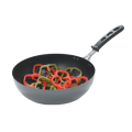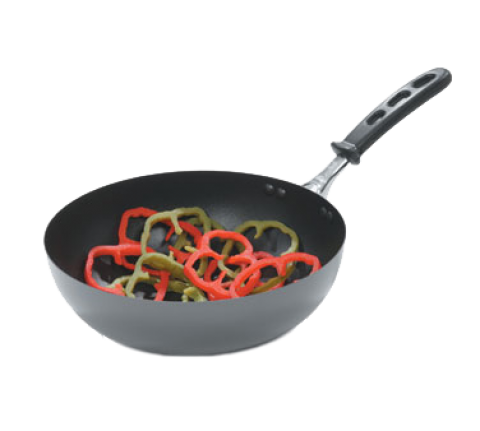 Induction Wok, Carbon Steel with SteelCoat x3 int & ext coating, featuring permanently bonded TriVent® silicone insulated handle, handle rated at 450°, rapid heating carbon steel designed for Induction & standard gas or electric cooktops, 11" dia, Made in USA