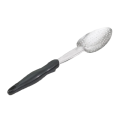 Ergo Grip™ Heavy Duty Spoon with black nylon ergonomic handle, equipped with all-natural antimicrobial, perforated, 13-13/16", heavy gauge 18/8 stainless steel, high temp, handle heat resistant to 450°F (232°C), textured surface handle with built in stopper notch, lifetime warranty, imported NSF, Jacob's Pride® Collection, Limited Lifetime Warranty (Refer to vollrathfoodservice.com for full warranty policy)