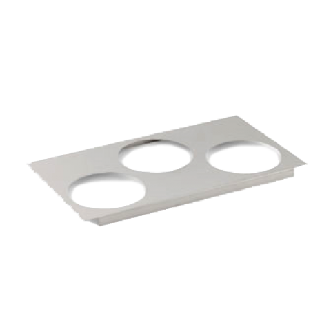 Adapter Plate, Stainless, with THREE 6-1/2" dia. inset holes, fits 78164 (Fits Thermoset wells only), Made in USA (Refer to vollrathfoodservice.com for full warranty policy)