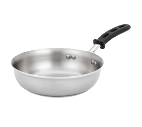Tribute® 3-Ply Saucier, 3 quart, featuring permanently bonded TriVent® silicone insulated handle, handle rated at 450° for stovetop or oven use, 3 layer construction: 18/8 stainless steel interior, 10 gauge 3004 aluminum core, & 18-0 exterior, induction, gas, electric, ceramic cooktops, 10" dia, NSF