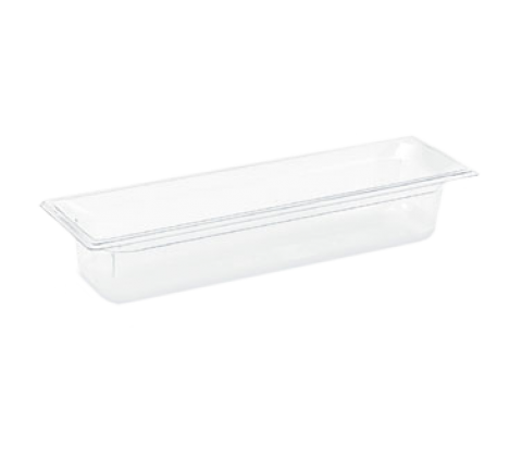 Super Pan® 2/4 GN Food Pan, 4" deep, low-temp polycarbonate clear plastic, top flange corners with concave indention, anti-jamming, ramped sides, reverse form flattened edge, framing shoulder, interchanges with SPV stainless steel pan line, NSF, meets gastronorm (EN 631-1) standard, Made in USA (Refer to vollrathfoodservice.com for full warranty policy)