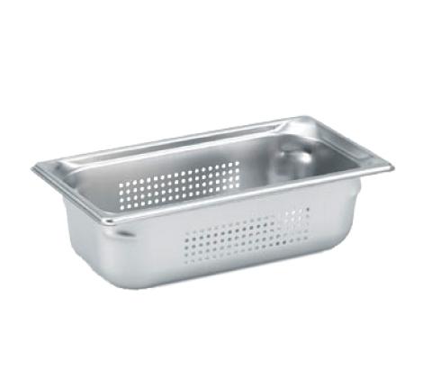 Super Pan 3® 1/3 GN Food Pan, perforated, 6" deep (150mm), 22 gauge, 300 series stainless steel, top flange corners with concave indentation, anti-jamming, ramped sides, reverse form flattened edge, framing shoulder, interchanges with SPV plastic Pan Line, meets gastronorm (EN 631-1) standard, NSF, Made in USA (Refer to vollrathfoodservice.com for full warranty policy)