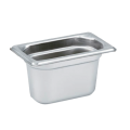 Super Pan 3® 1/9 GN Food Pan, 4" deep, (100mm), 0.9 qt capacity, 22 gauge, 300 series stainless steel, top flange corners with concave indentation, Anti-Jamming, reverse form flattened edge, framing shoulder, interchangeable with SPV plastic pan line, meets gastronorm (EN 631-1) standard, NSF, Made in USA (Refer to vollrathfoodservice.com for full warranty policy)