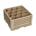 Traex® Rack Max®, full size, (12) compartment cup/glass, closed wall base with four extenders, compartment size 4-3/4" dia. hexagon, 9-7/16" inside height, co-polymer plastic, beige, NSF, Made in USA, (made to order) (Refer to vollrathfoodservice.com for full warranty policy)