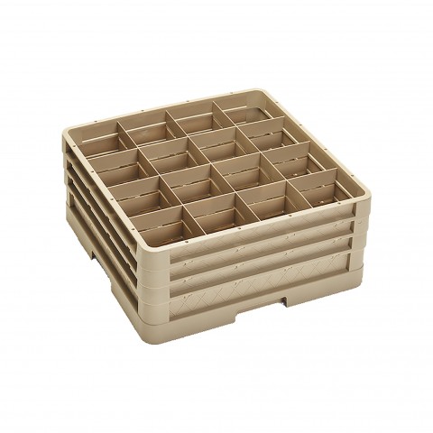 Traex®Compartment Rack, full size, (16) compartment cup/glass, closed wall base with three extenders, compartment size 4-7/16" square, 7-7/8" inside height, co-polymer plastic, beige, NSF, Made in USA, (made to order) (Refer to vollrathfoodservice.com for full warranty policy)