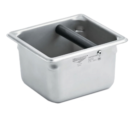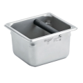 Knock Box, 1/6 size, 1-7/8 quart, 6-7/8" x 6-3/8" x 4" deep, rubber coated knock bar, includes: attachable rubber feet, 22 gauge, 300 series stainless steel, Made in USA (Refer to vollrathfoodservice.com for full warranty policy)