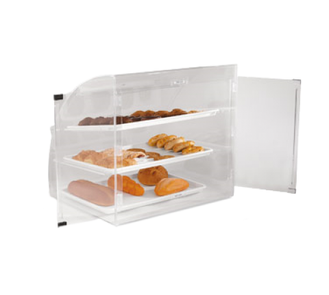 Euro Curve Bakery Case, countertop, full service, 29-3/4"W x 24-1/8"D x 27-3/4"H, accommodates (3) 18" x 26" trays, rear door, clear acrylic, includes: (3) white 18" x 26" trays (Refer to vollrathfoodservice.com for full warranty policy)