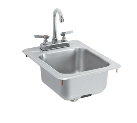 Underbar Sink, drop-in, 10"W x 11" front-to-back x 6-3/16" deep bowl, 4" OC deck mount gooseneck faucet, self-rimming, 3-1/2" drain with strainer, stud mounting with mounting brackets included, 20/304 stainless steel one-piece drawn construction, 13"W x 17"D OA, CSA, NSF, Made in USA (Refer to vollrathfoodservice.com for full warranty policy)