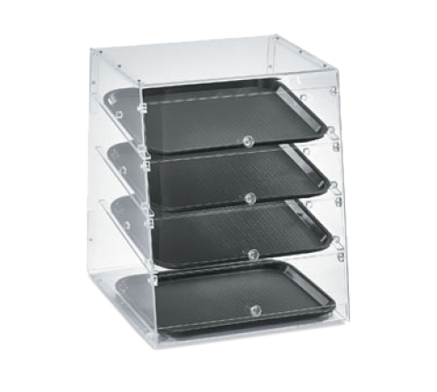 Display Case, counter top, slant front, self-service, non-refrigerated, 18-1/2"W x 19-5/8"D x 22-3/4"H, accommodates (4) 14" x 18" trays (included), (4) lift-up front doors, clear acrylic, rubber feet, KD (Refer to vollrathfoodservice.com for full warranty policy)