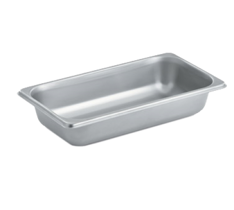 Steam Table Pan, 1/3 size, 2-1/4 quart, 12-3/4" x 6-7/8" x 2-1/2" deep, 20 gauge, anti-jam corner shoulder, 300 series stainless steel, NSF, Made in USA (Refer to vollrathfoodservice.com for full warranty policy)