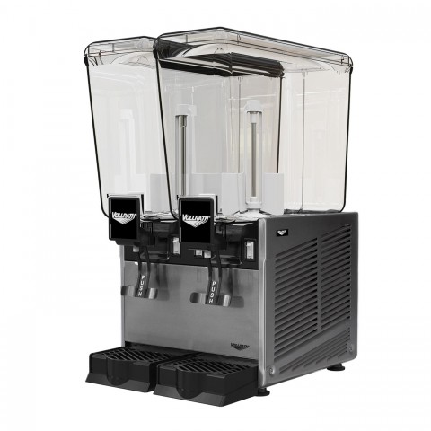 Vollrath Pre-Mix Refrigerated Beverage Dispenser, electric, stirring paddle circulation, (2) 5.3 gallon polycarbonate food grade bowls, 35° to 41°F temperature range, (1) thermostat per bowl, rocker controls, stainless steel unibody cabinet, gravity fed, stainless steel spigot, ABS plastic drip trays, R134a, 115v/60/1-ph, 5.5 amps, NEMA 5-15P, cETLus, NSF (Refer to vollrathfoodservice.com for full warranty policy)