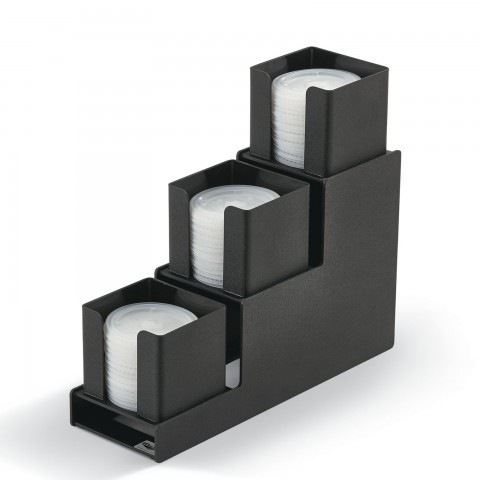 Lid organizer- Counter top step design. Narrow design takes up less counter space. Made of Durable ABS plastic.Compartment Sizes: 1- 4-1/8", 2-4 7/8" (Refer to vollrathfoodservice.com for full warranty policy)