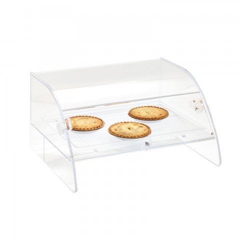 Extra Large Display Case, countertop, 1-tier, 28-1/2"W x 23-1/2"D x 15-1/4"H, (1) 18" x 26" clear tray, front door only with soft down hinges, 1/2" acrylic, must ship LTL, NSF (Refer to vollrathfoodservice.com for full warranty policy)