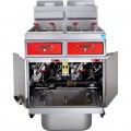 PowerFry5™ Fryer, gas, high efficiency, 63" W, (3) battery, 85-90 lbs. capacity per vat, programmable computer control with melt cycles, FivePass™ heat transfer system, electronic ignition, KleenScreen PLUS® filtration system, twin baskets, stainless steel cabinet & fry tank, adjustable casters (2 swivel locking & 2 non-locking), 270,000 BTU, CSA, NSF, ENERGY STAR®