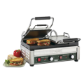 Tostato Ottimo™ Dual Toasting Grill, electric, double, 17" x 9-1/4" cooking surface, hinged auto-balancing top plate with heat resistant handles, flat cast iron plates, adjustable thermostats 570°F (300°C), indicator lights, brushed stainless steel body & removable drip tray, 3.2kW, 240v/60/1-ph, 13.3 amp, NEMA 6-20P, UL, NSF