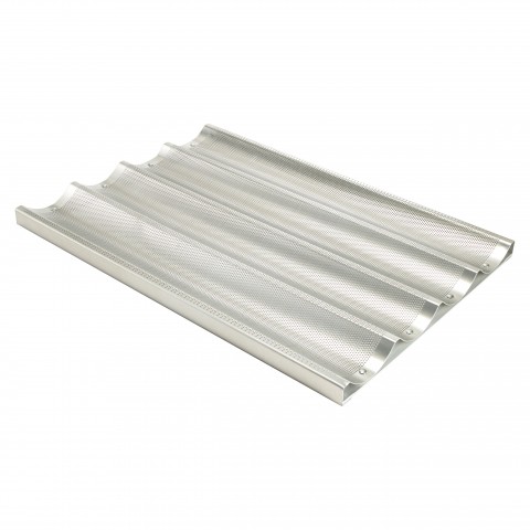 Baguette Pan, 4 Slots, 18" x 26" x 1" OA, perforated, 16 gauge, silicon glaze, aluminum (QTY Break = 6 each)