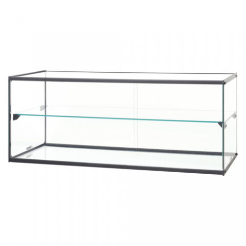 Display Case, countertop, ambient, 36"L x 16"D x 15"H, 2-tiers, tempered glass, aluminum frame, rear opening