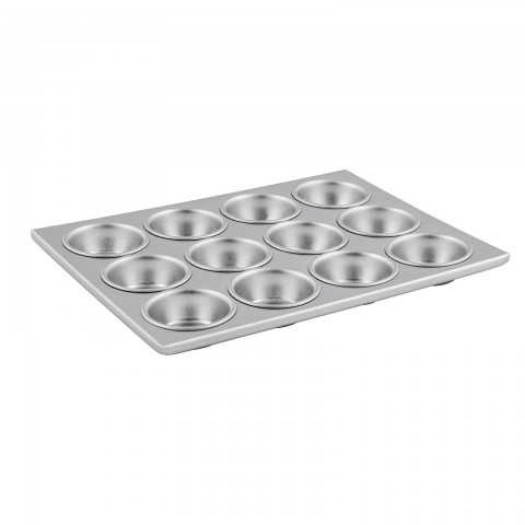 Muffin Pan, (12) 3 oz. 2-3/4" dia. x 1-1/8"H cups, 14"L x 11"W pan, rectangular, aluminum (Qty Break = 12 each)