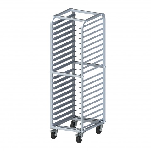 Sheet Pan Rack, mobile, full height, (20) 18" x 26" or (40) 18" x 13" sheet pans capacity, 1,000 lb. capacity, (4) 5" swivel rubber casters (2 with brakes), 3" runner spacing, reinforced base frame, welded, heavy-duty, aluminum, NSF (Qty Break = 1 each)