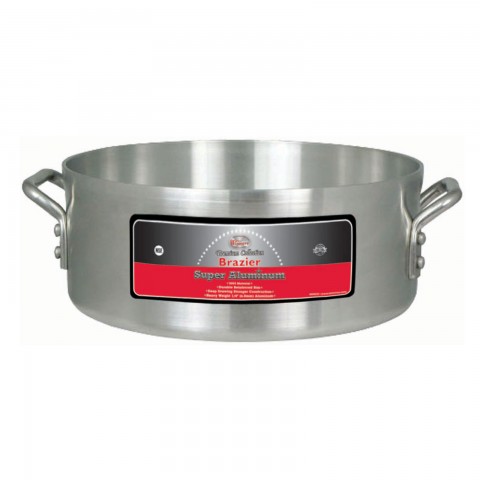 Brazier Pan, 28 qt., 18" dia., 6-7/16"H, round, without cover, reinforced rim and bottom, 1/4" thick (6mm), extra-heavyweight, 3003 aluminum, NSF (Qty Break = 1 each)