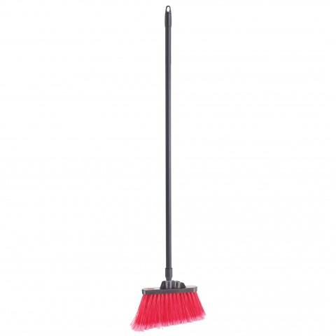 Angle Broom, 48”L fiberglass handle, medium duty, flagged, red bristle (QTY break = 12 each)