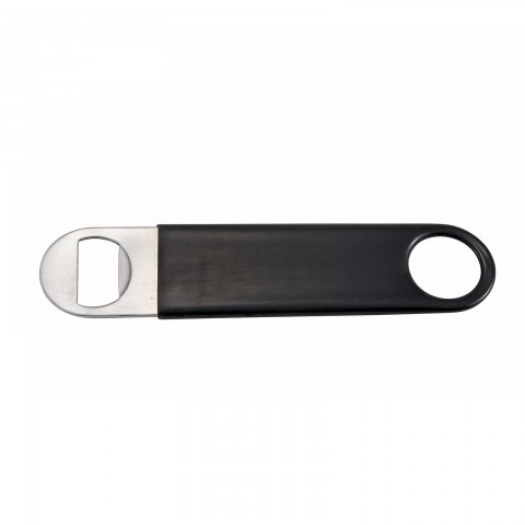 Bottle Opener, 7"L, flat, stainless steel with black PVC-coating (Qty Break = 12 each)