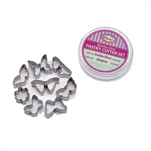 Cookie Cutter Set, 8-piece, 1"-2" dia., butterflies, includes storage container, rust resistant, stainless steel (Qty Break = 12 set)