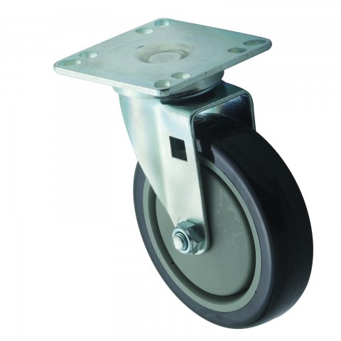 Universal Caster Set, 5" dia. wheel (raise height of equipment 6"), with 3-1/2" x 3-1/2" plate, 220 lbs. capacity, temperature range 14° to 212° F, grease resistant, polyurethane (2 each per set) (Qty Break = 4 set)