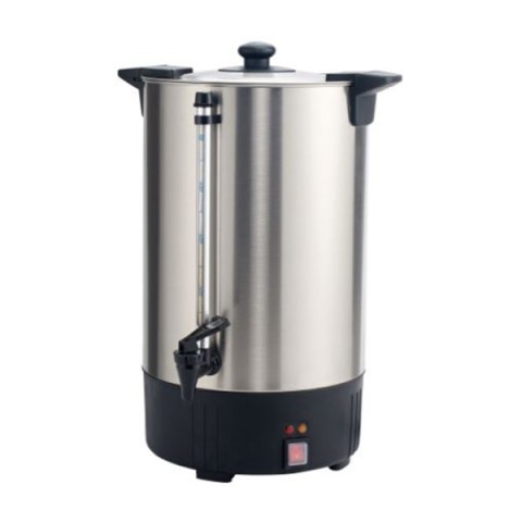 Commercial Water Boiler, 100-Cup (16 liter/4.2 gal), twist-locking lid, cool touch handles, dripless faucet with protected level indicator, waterproof ON/OFF switch with protective cover, heating and holding indicator lights, automatic shut-off safety feature, 304 stainless steel, 2.25kW, 220-240v/50/60/1-ph, VDE, CE, cETLus (Qty Break = 2 each)