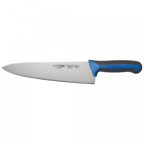 Sof-Tek™ Chef's Knife, 10" blade, wide, high carbon, non-slip black and blue TPR handle, X50CrMoV15 German steel, NSF (Qty Break = 6 each)
