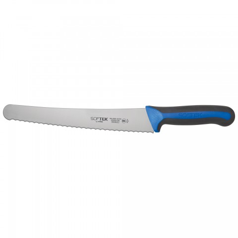 Sof-Tek™, Bread/Pastry Knife, 10" blade, wide, high carbon, non-slip black and blue TPR handle, X50CrMoV15 German steel, NSF (Qty Break = 6 each)