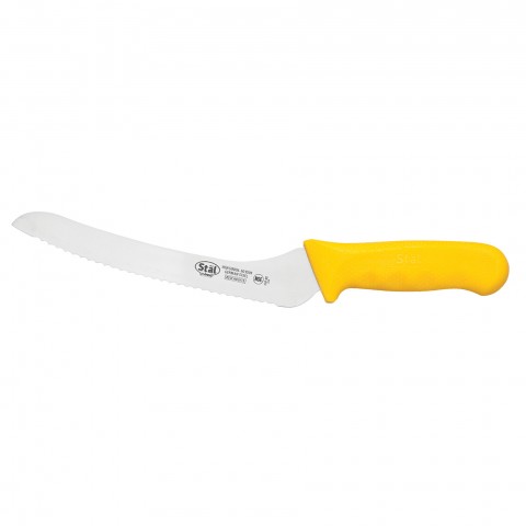Bread Knife, 18-1/4" O.A.L., 9" blade, offset, stamped, high carbon, no-stain German steel, polypropylene handle, Stal, yellow, NSF (Qty Break = 6 each)