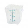 Storage Container, 4 qt., 7-1/8" x 8-5/8" x 7-1/4"H, square, stackable, built-in handles, graduation markings in quarts & liters, temperature range: -40°F to 210°F, dishwasher safe, polycarbonate, clear, NSF (Qty Break = 12 each)