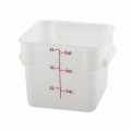 Storage Container, 6 qt., 8-3/4" x 10-3/4" x 7-1/4"H, square, built-in handles, graduation markings in quarts & liters, temperature range: -40°F to 160°F, stain resistant, dishwasher safe, BPA free, polypropylene, white, NSF (Qty Break = 12 each)