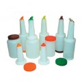 Liquor & Juice Multi Pour, 1 qt., complete set, assortment of colored spouts & lids (2 pieces of each color), NSF (Qty Break = 1 case)